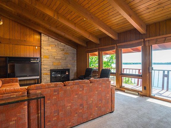 Stunning mid-century modern lake home, meticulously maintained and updated. On 1.2 acres with 180' of sandy lakeshore on pristine and quiet Green Lake - an easy commute from the Twin cities! This walkout rambler has 4BR, 4BA in 4700 sq ft of living space, an expansive deck, sauna, hot tub & gorgeous views of the lake from nearly every room. Tons of custom architectural details, hand carved doors, massive beams, floating vanities, built-in closet details - a once in a lifetime opportunity!