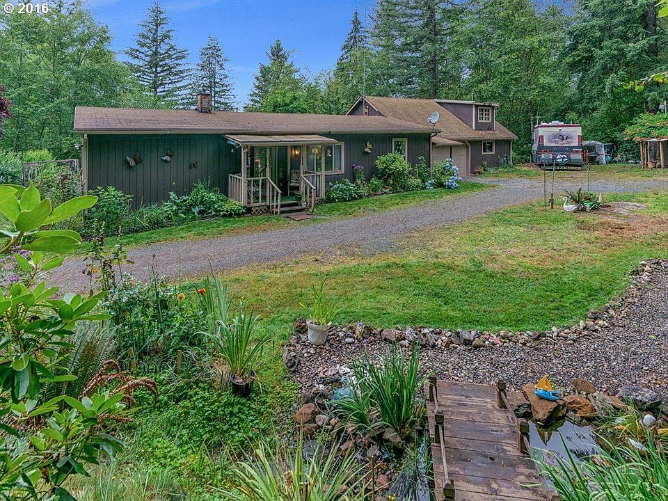 2.36 ACRES + HOME - GREAT BEGINNINGS! Gated driveway leads to the private, wooded setting for this 3 bedroom 2 bath manufactured home w/laminate flooring, pellet stove & forced air furnace, attached garage w/shop area PLUS outbuilding for storage. You'll enjoy the covered deck w/hot tub, water feature, blueberries, apples, grapes, kiwi & plums. Public water & well for irrigation. Perfect to live in now & build your dream home later!
