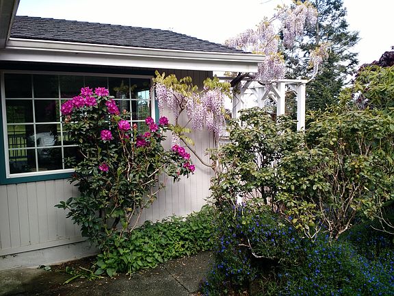 Enjoy mountain & ocean views from this 2BR/2BA home with beautiful acreage. Spacious open kitchen boasts cabinets galore with a cute breakfast nook.Living room with hardwood floors and french doors to an 800 sq ft deck for entertaining. Bonus den/office or bedroom you choose with slider to the back yard where you can journey to the Lower lot. This lot has services should you decide to sell it separate someday.