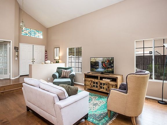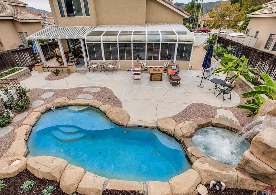 RESORT LIVING AT IT'S BEST!Charming 4 bedroom, 3 bath pool home is located in the quiet community of Rancho Highlands. Over 2390 sf feet of living space. Hardwood floors.Kitchen was recently remodeled with Quartz countertops, newer appliances, cabinetry and hardware. Main floor has a bedroom with huge walk in closet, along with a full bath downstairs. Upstairs features 3 good size bedrooms, and two additional bathrooms.This home is an entertainers dream, Sunroom, pool and spa, patio and BBQ area. Side of home has plenty of room for large storage with multiple producing fruit trees (2 Lemon, grapefruit, tangerine, naval and blood orange). Fully functional drip system as well as sprinklers system. Low HOA and low taxes. A winning combination. Won't last long.