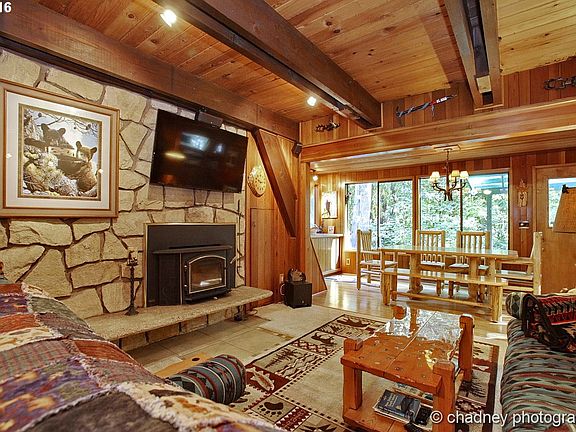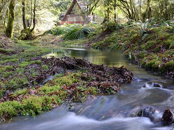 Listen to the Salmon River from entertainers deck w/hot tub. Nearly an acre of woodland paradise with spacious, updated A-Frame on SEASONAL creek. Family room w/propane insert opens to main deck, backyard & firepit. 2-updated baths w/custom tile. New hardwoods in dining. Main level bedroom w/deck. Master up with huge deck. 3rd br up with deck. Living room w/newer woodstove. Sound system. Shop with woodstove in 2-Car O/S garage.