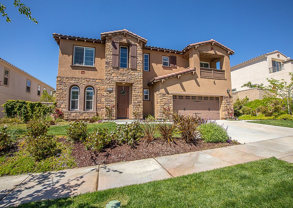 Gorgeous home on a cul-de-sac in the highly sought-after gated community at Valencia West Hills. Located in an award winning school district with top rated West Creek Academy. As you enter you will find cathedral ceilings leading you into a desirable floor plan that flows seamlessly from one room to the next with an abundance of natural light throughout. Feel right at home with an inviting formal living room, a formal dining room with a dramatic vaulted ceiling, and a spacious family room with fireplace that opens to a dreamy Chef's kitchen with an oversized island, granite countertops, GE Monogram stainless steel appliances, a walk-in pantry, and a butler's pantry with wine fridge. The great California Room with fireplace is perfect for indoor/outdoor entertaining. A powder room and bedroom with an ensuite bathroom are conveniently located downstairs. On the second floor you will find a loft for cozy gatherings, as well as 4 bedrooms all with sizable walk-in closets, and 3 bathrooms. The master suite retreat has a private patio with views of the hills, and a massive bath complete with a deep soaking tub, separate oversized shower, and double vanity. Other desirable features include engineered hardwood flooring throughout, wrought iron staircase, hall library with study area, upstairs laundry room with utility sink, custom plantation shutters, tankless water heater, dual-zoned HVAC, direct-access 3 car garage with abundant overhead storage, fully-owned solar panels to save you on electric bills, and so much more! Low HOA, amenities include 3 pools, clubhouse, walking trails, BBQ picnic area and playgrounds. Welcome Home! ***VIEW THIS HOME NOW WITH 3D VIRTUAL TOUR***