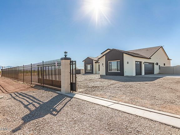 Fantastic opportunity to own this newly constructed home on a sprawling 1-acre lot! This fully-fenced property welcomes you with breathtaking mountain views, a 3-car garage, an 2 RV gates, a low-maintenance yard, and an inviting front patio. Fall in love with the captivating open layout with soaring vaulted ceilings, recessed lighting, a soothing palette, attractive wood-look flooring, and a dry bar for entertaining. The stunning kitchen features quartz counters with a matching backsplash, crisp white cabinetry, chic pendant lighting, stainless steel appliances, and a large island with a breakfast bar for casual dining. The primary bedroom boasts sliding door access to the backyard, an ensuite with double sinks, and a spacious walk-in closet for an organized wardrobe.