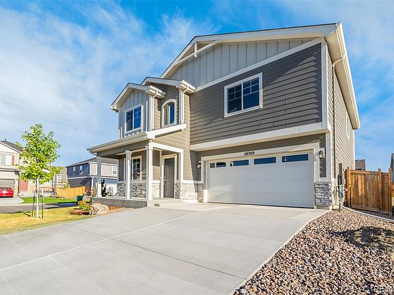 Welcome to Sky Ranch, where luxury living meets convenience! This remarkable 2-story home is ready for you to move in now, having previously served as the prestigious Model Home for Challenger builder, complete with all the premium upgrades you could desire. Situated on a spacious corner homesite, this residence boasts 3 bedrooms, 2.5 bathrooms, a laundry room, a great room, a kitchen, and a dining room. Step inside and experience the elegance of luxury vinyl plank flooring throughout the main floor, providing both style and durability. The kitchen is adorned with stainless steel appliances and exquisite quartz countertops, creating a modern and functional space for all your culinary adventures. A convenient pantry adds to the thoughtful design, making organization a breeze. Sky Ranch, a haven for single-family homes tailored to every lifestyle, offers the perfect blend of comfort and accessibility. Enjoy proximity to dining, shopping, entertainment, and various amenities, making every day a new adventure. This home is truly move-in ready, presenting an excellent opportunity that you wouldn't want to miss. The expansive loft upstairs opens up possibilities for a variety of uses, allowing you to personalize your living space according to your needs and preferences. Furthermore, the inclusion of an upstairs laundry room adds an extra layer of convenience, streamlining your daily routine. Don't wait – seize the opportunity to make this exquisite Sky Ranch property your new home. Welcome to a lifestyle of comfort, style, and unparalleled convenience. The community parks and trails make Sky Ranch feel like the perfect neighborhood to call "home." beautifully situated for enjoying local amenities, an easy commute, and various employment centers all nearby.Sky Ranch is perfectly located only minutes from DIA, the nationally acclaimed Gaylord Center. https://www.nhaschools.com/schools/sky-ranch-academy/en, https://skyranch.colorado.gov/