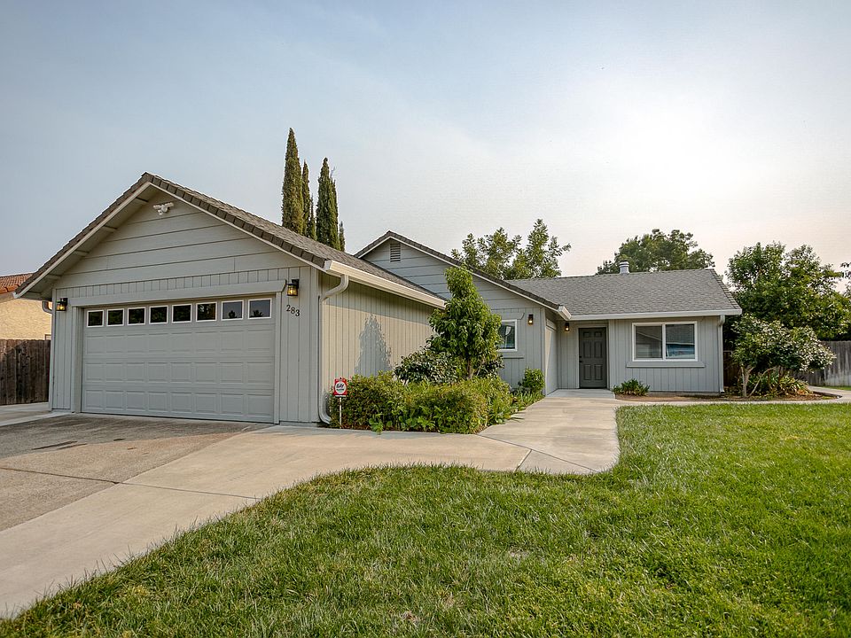 Just a short walk to one of the Sacramento River Trail entrances, or to the neighborhood park - or just enjoy your own backyard oasis completed with a sparkling gunite inground pool, hot tub and pergola. Nicely updated and feels like a model home - spectacular stacked stone fireplace catches your eye as soon as you step in the home. The kitchen with slab granite countertops and travertine backsplash has gleaming stainless appliances. Laundry room has a pantry area and more cupboards. Hall bath has been updated as well with a beautiful tile shower and vanity. Laminate wood flooring and travertine floor tile though the main areas. Split floor plan featuring a large owner's suite with on suite bath, and walk in closet. Bedroom #2 has a walk-in closet as well. CB165