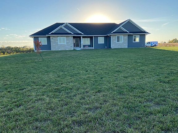 The peace and quiet of acreage living awaits in this like new ranch home sitting on just under 4 acres. The main level features 9' ceilings throughout and a vaulted ceiling in the large living area. Living area has a wood burning fireplace and large windows to take in the scenic views. 3 bedrooms and two bathrooms upstairs with a large walk-in closet and bathroom with a double vanity off of the master. The walkout basement is a clean slate to finish to your desire. In the back of the house you will find a large deck that you can access from the living / dining area with a large fenced in area that is great for pets. When it comes to the garage you will not be disappointed. The garage is an oversized 3 stall (approx. 1100 square feet) with water, electric heat, large floor drain and 8' overhead doors. MUST SEE TO APPRECIATE. Showing by appointment only, 402-660-0080.