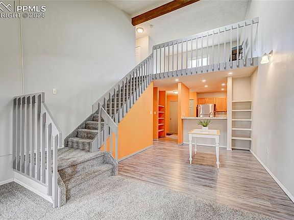 Spacious feeling main-level living with some character, an attached two-car garage, and two master suites. Try finding that anywhere else in the Academy School District 20 at this price-point! With the master, included washer & dryer, and stylish kitchen with stainless steel appliances all on the main level, it almost lives like a ranch home with a basement--except the stairs go up instead of down. (Ask for the 3-D virtual tour; you'll see what I mean.) Then there's an upstairs loft that could be a guest area, home office, library, or game room, and a second master with a deck that has nice mountain views. You'll fall in love with the vaulted, beamed ceilings and an open loft that gives this home a great feeling of space and light. This small HOA is nice change of pace from some of the large, unapproachable complexes. Need a fenced yard? There's the possibility of fencing a small yard by your patio outside the living room like some of the other homes in this wonderful little community (check with HOA to be sure). To top it off, you can walk cross the street to Rampart HS, or the park behind the school with miles of connected trails, disk golf, sports fields, a dog park, playground, and an awesome BMX track. Come fall in love with Briargate and call this your home.