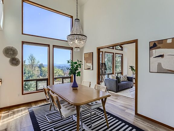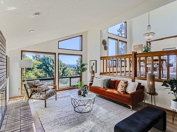 Natural light floods this beautifully remodeled, cool 80's contemporary with soaring ceilings/windows to showcase the amazing, ever changing moods of Mt Hood and wide angle views of the big sky. Mostly main level living and the open, flowing floorplan has been updated with a low maintenance lifestyle in mind: throw your athletic gear into the mud room/laundry room or bath right off the garage, indestructible flooring (70% stone), skylights, remodeled baths, lighting, interior/ext paint, carpet, water heater. HVAC, cedar roof about 13 years old, deck recently replaced, irrigation system, fenced dog run. The view plus the remodel makes everyday feel like a vacation. No stress- Nothing to do but unpack ! Fantastic location - neighborhood parks, shopping ,restaurants and close to major expressways.