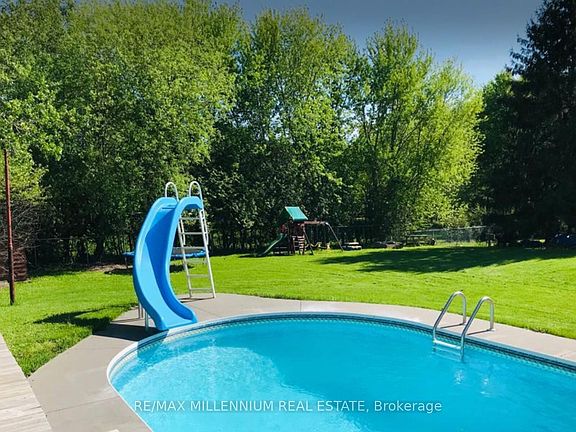 Beautiful approx. 2,400 sq. ft. raised bungalow with a separate entrance and finished walk-out basement. Featuring 3+2 bedrooms and 3 bathrooms, this home offers cottage-style living just minutes from Hwy 400, Tanger Outlets, and Gilford Beach.Enjoy a breathtaking backyard oasis complete with a saltwater pool, cozy fire pit, and plenty of space for family gatherings and entertaining. Inside, you'll find a spacious, updated kitchen, upgraded baseboards, and elegant crown moulding.This is truly a must-see property that perfectly blends comfort, style, and convenience!