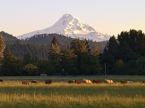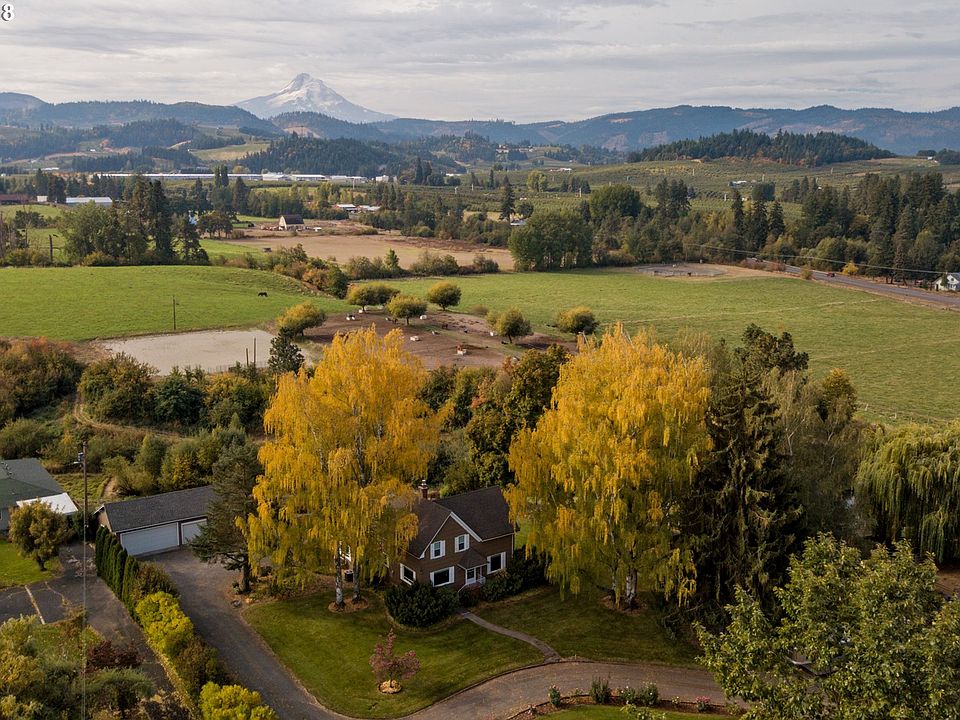 Once in Lifetime! 33+/-ac; spectacular Mt. Hood/Adams views. Cozy, inviting, restored 2100+sqft home with 3 bed/2 baths & an enchanting Bonus room. Fabulous mature landscaping! Huge iconic barns; 5 stalls, wash station, fencing, 31+ac pressurized irrigation rights & K Line pods. Gorgeous yr round pond. Triple car garage. Options: animals, vineyard, orchard, farming. Just 7 min to town/30 to Mt. Hood! That Amazing Welcome Home Feeling!