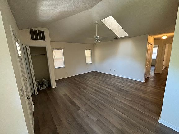 NEW FLOORING AND FRESH PAINT!! Spacious 2 bedroom, 2 bathroom quadplex end unit featuring a nice sized living space, dining area, kitchen with breakfast bar, and 2 large bedrooms. Open and bright with vaulted ceilings and a skylight. The main bedroom has attached bathroom and a large walk-in closet. Inside laundry room, vaulted ceilings, owner recently installed new LVP flooring throughout and painted the interior. First, last, security required. All applicants over 18 will be required to complete a background check. No Smoking. No application fee. Call today! First, last security. No Smoking. Credit and Background check for all applicants over 18.