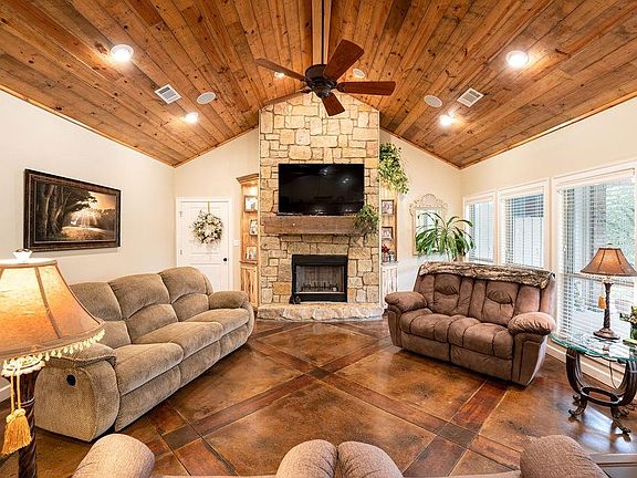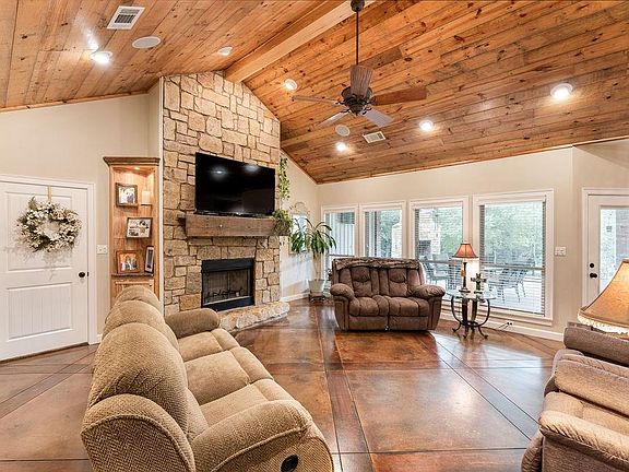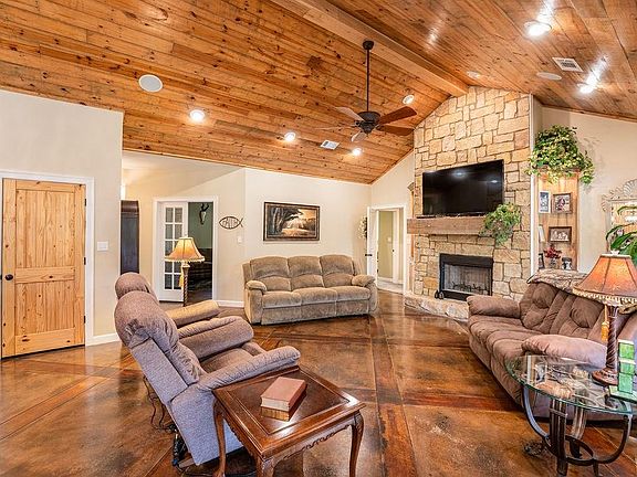 Peaceful Country Living on 5.77 Acres, brushed volcano granite on kitchen island, granite countertops throughout the home Custom hickory cabinets trimmed in walnut, 2 full size gas ranges, 2 microwaves, a large walk-in pantry and second kitchen pantry. Cathedral ceiling in Living room, Kitchen and Office with beautiful reclaimed wood. Large Master Suite with oversize walk-in shower, large walk-in closet. Rock Fireplace inside & outside, ask for a list of the amenities in this great home, too many to list.