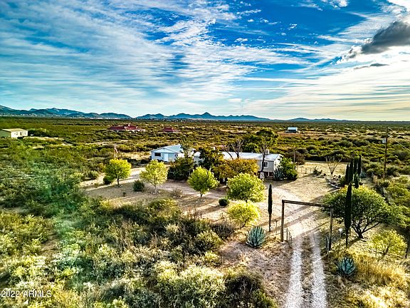 Well Maintained 3 Bedroom 2 Bath 1,538 sq ft Manufactured Home (1985) and 800 sq ft Workshop on Fenced 4.9 Level Acres with Private Well, VERY Close to Bisbee City Limits. With newer metal roof, 2 evaporative coolers, set back from the road, with great views, mature trees, front and back porches with great mountain views, circular drive and privacy.