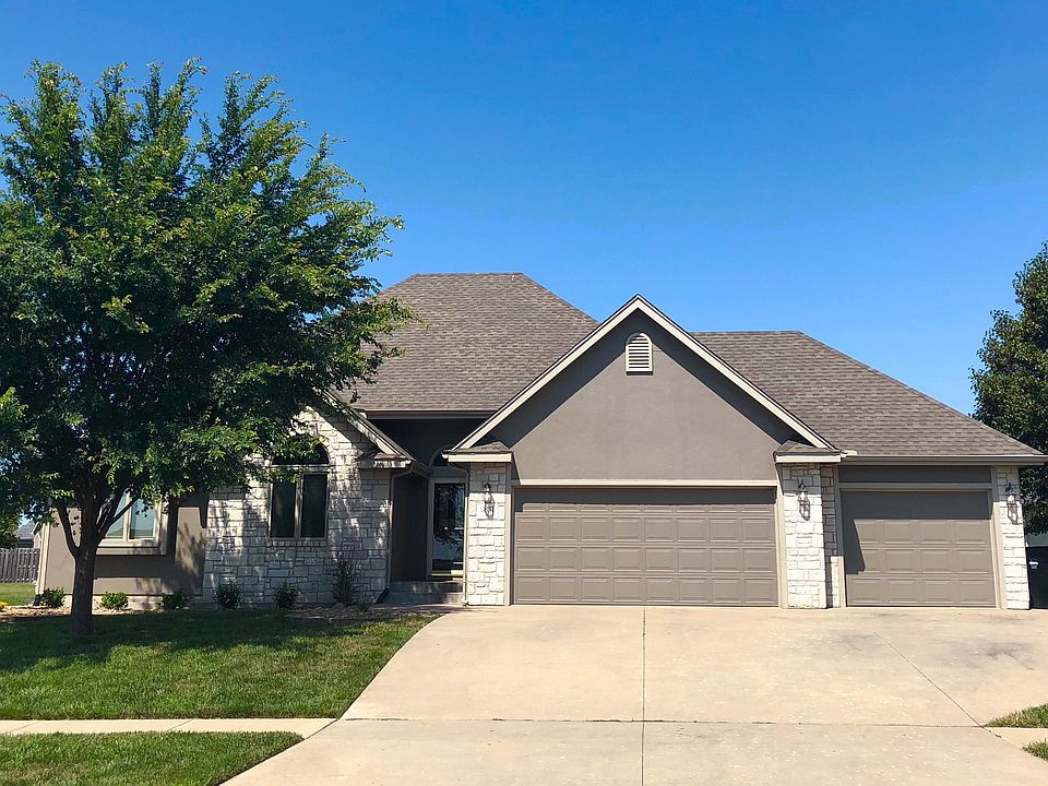 Spacious ranch located in desirable Sherwood Park! Buyers agents welcome! USD 437 schools and no specials! Perfect family home with 5 BR, 3 BA and nearly 3200 square feet of space to spread out. Entire main level is brand new with complete remodel in 2017. Brand new hand scraped hickory solid wood floors on main and brand new carpet in bedrooms in 2018. Brand new kitchen including cabinetry, granite, lighting, appliances and designer Kohler sink and faucet. Large walk in pantry and eat in kitchen plus additional large dining room. Full fireplace remodel to gorgeous stacked stone with large solid stone raised hearth. All wood has been replaced with solid knotty alder trim, 6 inch baseboards, solid knotty alder raised plank doors throughout entire upper level in addition to rubbed bronze hardware. Upstairs also has all new paint, lighting fixtures and hardware. Master bath complete remodel in 2016; giant 5 foot all tile walk in shower with custom Onxy base, 6 foot custom Onyx countertop with dual sinks and custom cabinetry. Basement is beautiful! Finished with all high end finishings in 2008, it boasts nearly 1500 sq ft, two large bedrooms; one with walk in closet and the other with beautiful French doors. Egress windows in both. Huge living room with egress window, fun stage for plays, concerts, or performances, wet bar, and built in surround sound. New roof in 2013, new exterior paint in 2015 and new water heater in 2017. Water softener, security system, freshly stained deck and Rainbow play set, and 3 car garage with epoxy floor; this home has it all! With its large 84x150 landscaped lot, you will love being both indoors and out. Home inspection completed as well as radon testing. Make an appointment today to see your new home!
