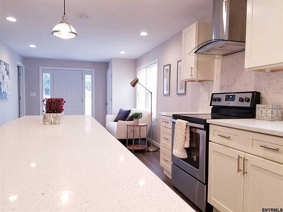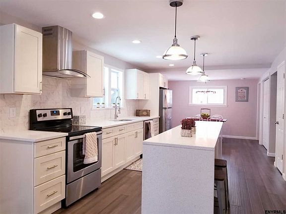 This single story ranch has been renovated throughout and is ready for new life! Situated on a large lot near Sand Lake Miller Hill Elementary, this home offers a large Master Suite with walk-in closet and gorgeous bathroom, a beautiful modern kitchen with quartz counter-tops and an open concept dining area/living room. Large rooms and closets. Plenty of storage inside and out with additional storage in the rear of the structure.