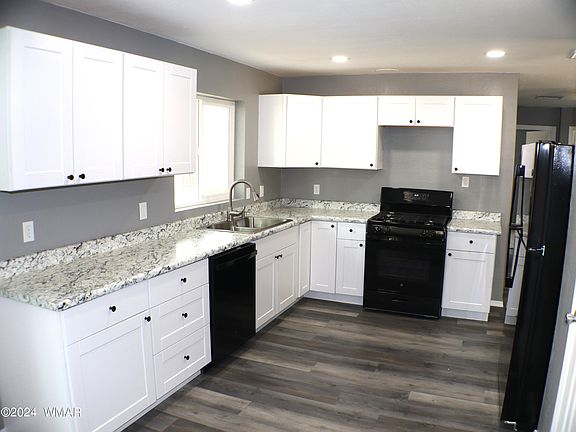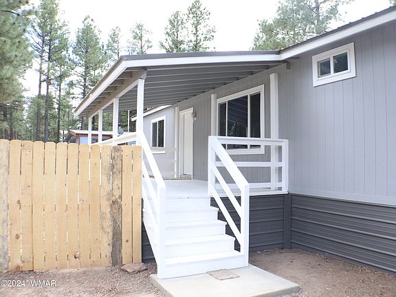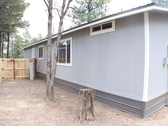 This 3 bedroom, 2 bath home is nearly brand new after this remodel! There are 1440 sq ft of living area in the pines with a private fully wood fenced backyard. Good size laundry room with sink and cabinets, clothes dryer can be electric or gas. Nice covered deck entrance. Natural gas forced air heat. New metal skirting, new facia wrap, new doors and windows, new flooring, fresh paint, new countertops, new cabinetry, new appliances, new roof, new furnace, new water heater, new outlets and switches and more. Tied down with extra piers added. No HOA area. Move in ready!
