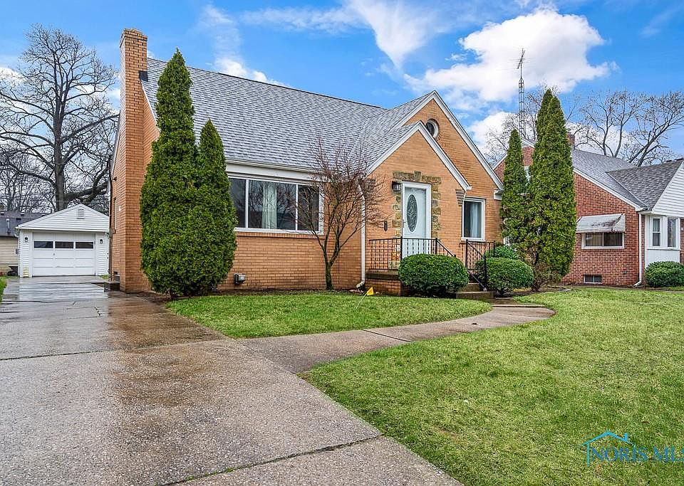 Beautiful brick 3 bedroom with full dry basement in West Toledo Elmhurst District. Beautiful wood floors on main level with carpeted bedrooms. Very large 2nd floor bedroom and bonus room. Newer roof & hot water tank. 2 car beautifully maintained garage with upper storage. Remodeled kitchen and bathroom. This is a plum!