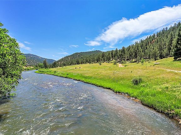 Discover a rare 13-acre riverfront estate, where the true value lies in its pristine location and the opportunity to build your dream home. Located along the North Fork of the South Platte River, this expansive property offers over 400 feet of private river access, ideal for fishing enthusiasts and nature lovers. The serene grassy meadow, accessed by a new steel bridge, provides multiple build sites, perfect for crafting a million-dollar dream home amidst stunning natural beauty. Backing to expansive National Forest, this land offers unparalleled privacy and is not intended for subdivision. Instead, it invites you to make the entire 13 acres your personal sanctuary. Design a bespoke residence that embodies the essence of Colorado's mountain landscape, with the existing cabin as an accessory dwelling or tranquil retreat during construction. The updated, fully furnished cabin adds extra value, featuring vaulted ceilings with wood beams, a gas fireplace, acacia laminate wood floors, and custom blinds. The well-appointed kitchen includes maple cabinets, a new gas oven, and all necessary kitchenware. The remodeled bathroom boasts fresh tiles, custom shower glass, and an updated vanity. Enjoy peaceful views of the trees and river from the sunroom. Located in the historic town of Pine Grove, this property offers easy access to local attractions like Zoka’s restaurant and Pine Valley Ranch Park, known for its hiking trails and National Forest access. Just 12 minutes from Highway 285, this prime location combines the tranquility of a secluded mountain retreat with convenient access to amenities. Embrace this unique opportunity to own a piece of Colorado's riverfront paradise, where you can build the home of your dreams and live surrounded by the natural beauty of the mountains.