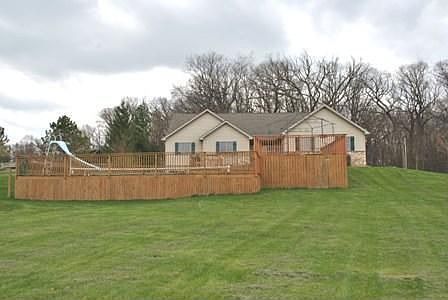 WOW! Over 5 Acres of privacy & seclusion. Wildlife in your own back yard! Full exposed 3BR 3 full bath Ranch w/huge pole barn for all your toys. Open concept w/cath ceilings. LR w/NFP. Lg KIT w/center island & all appliance included. Entertain in the fully finished lower level w/BR's & full bath. Huge two-tier deck with above ground pool. Priced Over $100K Under Assessed Value!!!