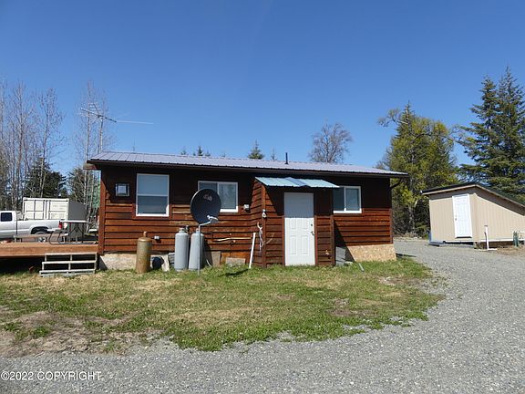 Dream fish camp cabin with plenty of storage for your boat and toys. Convenient location just a short drive to Homer or Ninilchik for world class fishing. WITH a view of the Alaska Mountain Range! Cute sauna on skids. Cabin has been used for summer time only, but could be year round with a little extra insulating under cabin.
