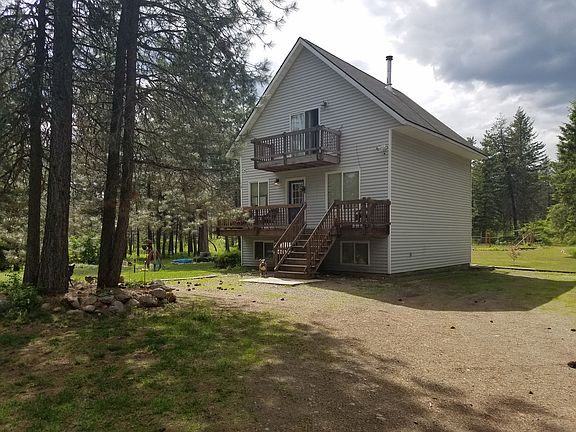 Two story home with a finished walkout basement on 10 private treed acres. Includes a 36' x 48' shop with a concrete floor, garden shed and two stall livestock barn. Property has a large yard, fire pit, fenced garden and firewood lean-to. Quiet neighborhood two miles outside of Spirit Lake and 20 minutes from Coeur d'Alene.