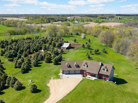 VIEWS FOR MILES FROM THIS 20 ACRE HIDDEN PARADISE! THIS COUNTRY STUNNER HAS ALL THE BELLS AND WHISTLES INSIDE AND OUT. WONDERFUL MAIN FLOOR MASTER SUITE WITH WALK IN CLOSET AND PRIVATE BATH INC TILED SHOWER + JETTED TUB. 2 STORY FOYER WITH BRAZILIAN CHERRY WOOD FLOORS, HUGE GOURMET KITCHEN, MAIN FLOOR LAUNDRY AND GUEST BATH. AMAZING UPPER LEVEL LOFT WITH SKYLIGHTS AND 2 OVERSIZED BEDROOMS WITH VAULTED CEILINGS. FULLY FINISHED WALK OUT LOWER LEVEL WITH HEATED FLOORING, FAMILY ROOM, WOOD BURNING FIREPLACE PLUS 3 ADDITIONAL BEDROOMS + FULL BATH. 48x36 DREAM GARAGE THAT IS HEATED, INSULATED, HAS 8' DOORS, 3 OPENERS, EPOXY FLOORS AND 200 AMP ELECTRIC. 660 SQ FT FINISHED AND HEATED BONUS ROOM ABOVE THE GARAGE WITH POTENTIAL ACCESS DIRECTLY INTO HOME. THIS ACREAGE IS PERFECT FOR HUNTING, FARMING, ANIMALS AND TOYS. PERFECT MIX OF TREES WITH MANY APPLE TREES TOO, OPEN LAND, TRAILS, SMALL ANIMAL BARN AND LEAN TO. INTERNET IS NOW 80 MBPS! A DREAM HOME, INSIDE AND OUT.