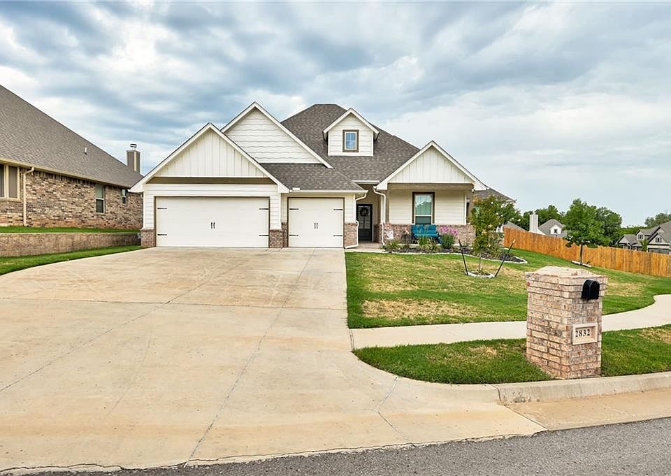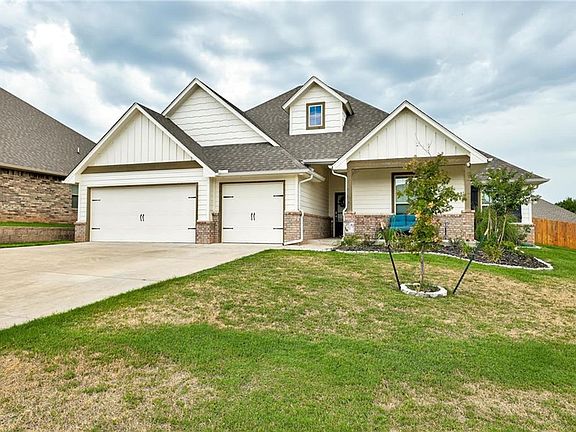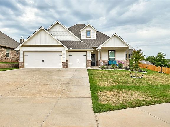 Don’t miss this incredible 4bed, 2.5bath timeless beauty! This Hazel floorplan has everything you need from a 3-car garage with inground storm shelter, R-44 insulation, solar boards, Rinnai tankless water heater, and a whole home air purification system in east Edmond! The open concept living room boasts a corner fireplace with stacked stone surrounding, a barn door to close off the hallway, and oodles of natural light. The immaculate kitchen has a walk-in corner pantry, large island w/3cm granite & a coffee bar nook! The laundry room has direct access to the Primary suite closet! The primary bathroom suite has separate vanities, a whirlpool tub, a large walk-in shower, spacious closet w/3rd row hanging space. The back patio has about 225 sqft & includes an outdoor wood-burning fireplace. Complete w/ 8x10 shed in the backyard! The neighborhood has several playgrounds, a resort-style pool, & workout facility. Close to I-35, medical, shopping, & entertainment