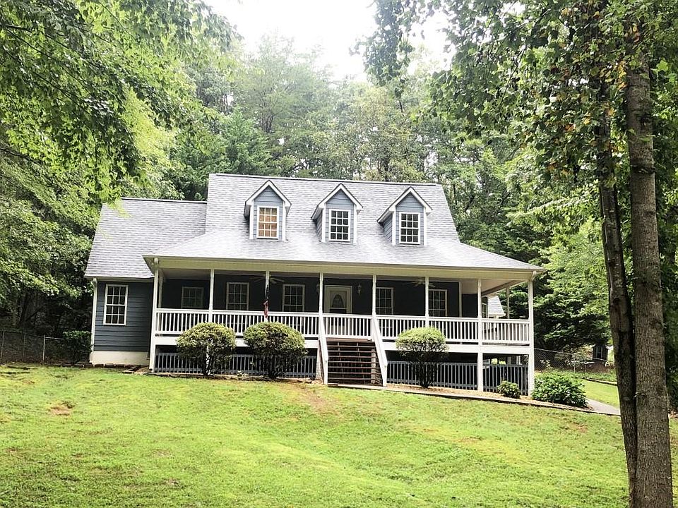 Beautifully renovated home in Cleveland. As you make your way to the front door, you are greeted by an extra-large covered front porch. Perfect for gatherings and enjoying the cool mountain breezes. Upon entering the foyer, there is an extra-large living room and a formal dining room. The family room has a fireplace with gas logs for those cool evenings. Off the family room is a deck that is private and perfect for grilling and get-togethers. The kitchen is spacious with all-new stainless steel appliances and a breakfast nook. There is a mud room with laundry and 1/2 bath. Primary bedroom is on the main level with a large primary bath. Primary bath has a separate tub and shower. Most of the flooring on the main level is oak hardwood. As you go upstairs, there is a flex space for an office, game room, or entertainment area. There are 2 secondary bedrooms and a full bath upstairs. The home has a side-entry double garage. There is a large walk-in attic space for storage that is floored. There is a storage building just behind the garage. The entire home's interior has been painted in the last 2 months. Kitchen appliances are 2 months old. Roof is 4 years old. One of the HVAC units is 5 years old. Exterior paint was done 3 years ago. This home is close to wineries, shopping, restaurants, and downtown Cleveland and Helen. This beautifully landscaped property is ready to be the next FOREVER HOME for a potential buyer!