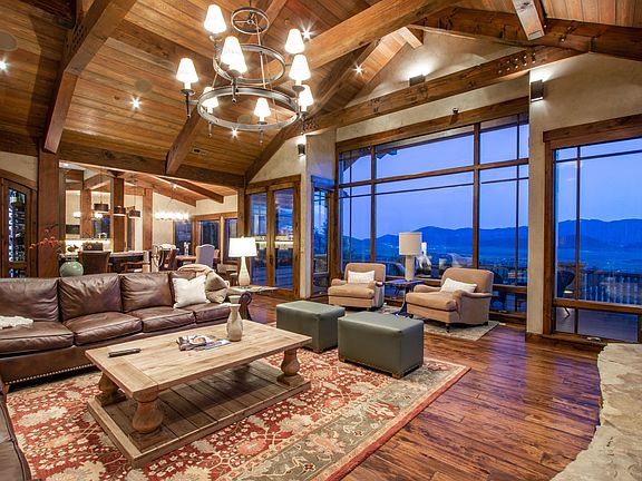 This exceptional home presents itself with a level of craftsmanship and attention to detail that is rarely seen. The home was designed and built by Gary Francis and is ideally located within the Painted Sky subdivision of Promontory. The home is oriented to take full advantage of the extensive views of Deer Valley, Park City and the surrounding mountains. The primary living area includes floor to ceiling windows, an impressive natural stone fireplace, a chefs kitchen with a wood fired pizza oven, semi-formal dining area and a wet bar with counter seating. The main level master suite occupies its own wing of the home and includes an executive office and spa quality bathroom with dual walk-in closets, large soaking tub and steam shower. There are four additional bedroom suites including a bunkroom. Additional amenities include an expansive second living area, elevator, home theater, cedar sauna and outdoor entertainment area with built in natural stone fire pit and hot tub.