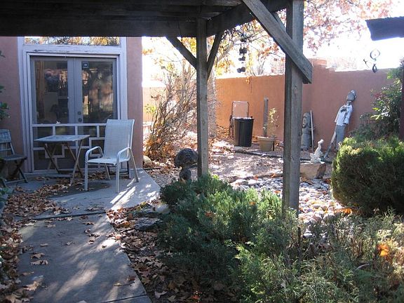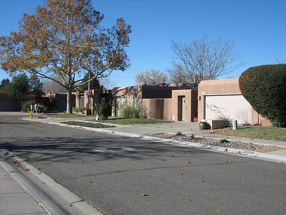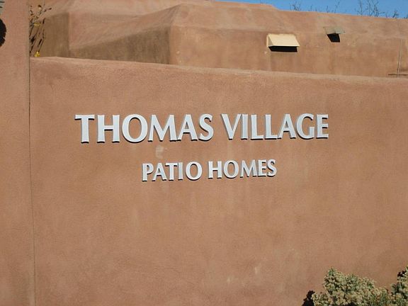 Rare find in the highly sought after Thomas Village Patio Homes area. Open, bright floorplan featuring tasteful Southwest accents throughout. Beautiful custom tile in all rooms, raised ceilings, large tempered glass window in main living room brings the outdoors into the living quarters. European style cabinetry, beautiful fireplace w/ planter, office/sunroom area off kitchen. EZ care landscaping w/gorgeous water fall/Coy pond, screened detached porch, huge shade trees, garden area. Subdivision features a private park, and a beautiful city park across street from home. Quick access to Bosque walking/bike trails and all areas of the city are just minutes away w/quick, easy access to I-40. An exceptional find for the empty nester, retirees, or couples that is priced to sell. See it today!