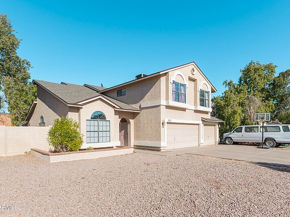 Delightful two-story home located in a highly sought-after Mesa neighborhood, known for excellent schools and convenient access to shopping and 202 freeway. New roof and water heater 2024! Backyard is perfect for outdoor activities, gardening, or relaxing. Inside, the home boasts a well-designed floor plan that seamlessly connects the living, dining, and kitchen areas. The updated kitchen features double oven, painted cabinets, stainless steel appliances, extra storage. Natural light fills the home, thanks to thoughtfully placed windows throughout. Additional features include a spacious 3-car garage with a utility sink and a convenient service door leading to a shed in the backyard behind a RV gate. The large driveway provides extra parking, making this home as practical as it is charming