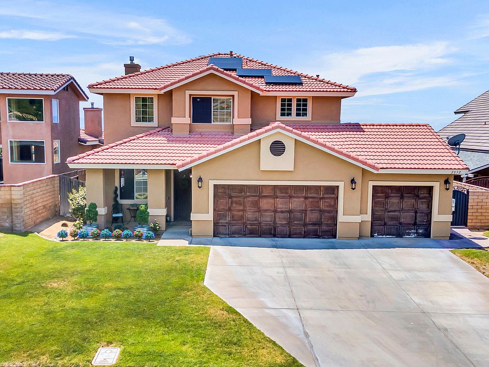 One of the standout features of this home is the phenomenal panoramic views of the entire Antelope Valley. The backyard is equally impressive with gorgeous, stamped concrete and a covered patio-ideal for everything from summer BBQ's to enjoying fireworks displays on the 4th of July and watching breathtaking sunsets. This home has it all, and sure will go fast, and awaits its new family to call it home sweet home!