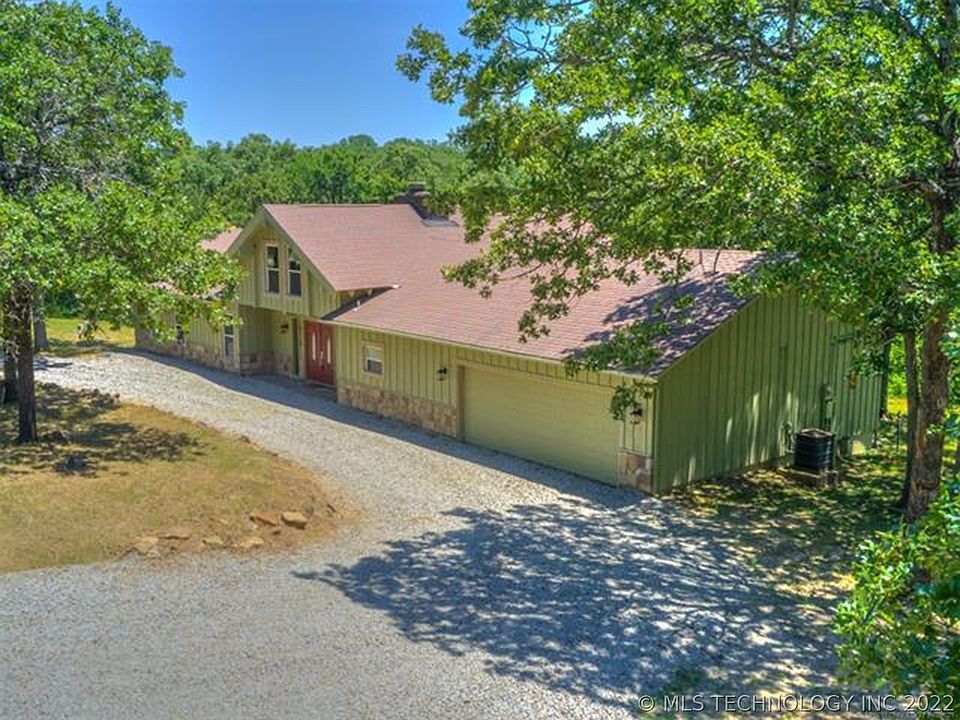 COUNTRY ROAD TAKE ME HOME!! SECLUDED 5+/- AC ON PRIVATE DEAD END ROAD! COMPLETELY REMODELED- This 2,400 sf home is an entertainer's dream, featuring a gorgeous floor to ceiling fireplace, loft, granite countertops, luxury vinyl rigid core flooring, abundant windows for natural lighting, remodeled bathrooms, and more. No detail was spared to create this dream home centrally located directly between Tulsa and OKC off Hwy 75 and I-40. Spacious, excellent views, hunting potential, and beautiful mature trees.