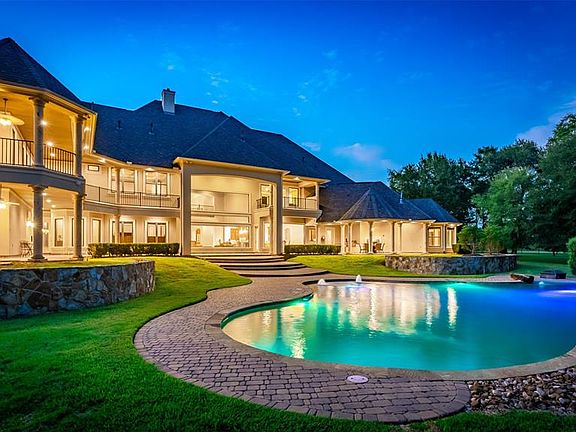 Magnificent Estate Home with over 12,000 sq ft on 2.43 acres backing the golf course in the prestigious gated community of Falls at High Meadow Ranch! Soaring ceilings, stunning millwork, and extensive custom cabinetry throughout. Entertainerâs dream kitchen w/ cherry cabinets, Viking range, double ovens and huge walk-in pantry. 2 story study/library and 3 staircases. Master bdrm w/ fireplace, sitting area & his/her closets. Palatial master bath with infinity edge tub, expansive walk-in shower and soaring ceilings. 2 bdrms down, and all secondary bedrooms are oversized w/ en-suite baths. Game room, lrg media room w/ snack bar, & second laundry up. Separate entertaining wing includes lounge w/ full wet bar, billiard area, card room & huge covered balcony. His & hers garages with room for up to 13 cars! Larger garage is climate controlled with high ceilings ready for lift. Over 2000 sqft of covered patio/balcony overlooking huge Pebble-tec pool. Outdoor kitchen & full pool bath too!