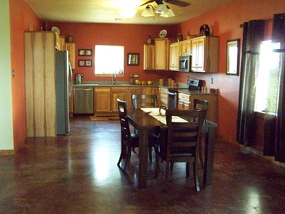 Built 2011 with steel truss & beam, very sturdy! 3 bedrooms, 1.75 baths, stained concrete floors throughout, open living/dining/kitchen. Kitchen has natural hickory cabinets, appliance garage, granite counters, and stainless steel appliances. Master bath has tiled walk-in shower, walk-in closet. Economical utilities, spray-foam insulation in roof & walls, nice front & back porches, total elec., good water well-never ran dry. Huge 40x60’ Quonset-style shop part dirt & concrete floor, 40x60’ metal barn matches house, has water & elec., separate meters for barn & house. Barn has 2 horse stalls, tack room with washer/dryer hooks up, sink, window unit. Cellar, REC elec., RV hook up by barn. Great Location with horse/cattle ranches in surrounding area. From I-35 & Hwy.17A go 2 miles west to 4-way stop & south on Indian Meridian 2.5 miles-property is on east side with rock entry, pipe fencing, paved road access & within 4.5 miles of I-35. Neighborhood Description Great Location with horse/cattle ranchers in the surrounding areas.