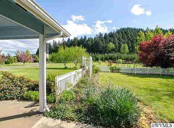 Nestled in the heart of the Willamette Valley sits this beautiful 10 + acre property! Zoned rural residential with farm deferral, this property sits adjacent to university forest land with miles of hiking, bike and equestrian trails. Owner’s pride of ownership shows with the like-new, four-bedroom, three-bath, 2,500 sq. ft. home built in 1998 with an additional unfinished bonus room above the attached three-car garage. Front and rear porches with cement patios and inset lighting run the length of house. Master bedroom with private bath and walk-in closet is located on the main floor and has slider onto back patio. Two out buildings have electricity and water. Handsome, red metal, 36 X 48 foot barn includes two stalls with sliding doors, and 12 X 48 foot covered cement patio. Matching three-room unfinished cabin/event area set within a poplar grove, has 36 X 36 foot cement patio, lattice enclosure, arbor, two decks and a fountain. This area would be perfect as a guest house, entertaining area for large gatherings, shop, or farm-related activity such as nursery or dog kennels. Lovely gardens surround the property and feature established fruit trees and fir-forest area. Fishing dock and 1/3 acre pond is stocked with bluegill and bass; native wild life include elk, turkey, and other critters. All this and there is still plenty room for pastures, orchards or…. Situated just ten miles from Corvallis, home of Oregon State University, and Monmouth, home of Western Oregon University this one of a kind opportunity is only 2 ½, paved, country miles from Oregon's scenic Hwy 99W. For more details on this property, please call or text Carla Allen of RE/MAX Integrity at 541-730-2223.