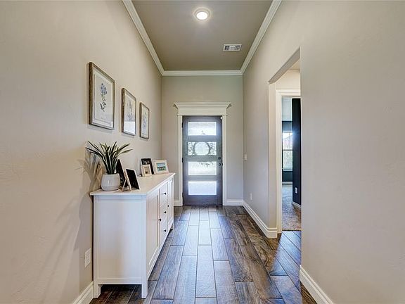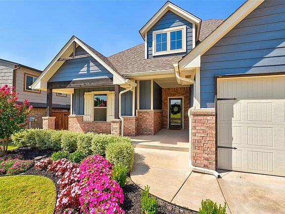 Check out this gorgeous house in Woodland Park! It boasts 4 bedrooms, 2 baths, and a 3 car garage. The moment you step inside, you'll be wowed by the natural light pouring in, the tall ceilings, and the wood-look tile floors that are sure to last. Get cozy in the living room with its gas fireplace and beautiful stone surround. The kitchen is a dream with stainless appliances, built-in gas cooktop & oven/microwave combo, stunning quartz counters, spacious dining area, walk-in pantry, & extra large island perfect for entertaining. The dining room opens up to the backyard living area, which features a covered patio featuring a wood burning fireplace on chilly nights! The primary suite is stunning complete with a double vanity, walk-in shower, and jacuzzi tub + walk-in closet with high ceilings for all your seasonal clothes. The Woodland Park community has awesome amenities like a pool and clubhouse, all nestled in beautiful East Edmond. This home also includes a tankless hot water heater, storm shelter, sprinkler system, and a beautiful backyard with a green belt view. It's move-in ready with modern finishes and an open floorplan. You don't want to miss this one!