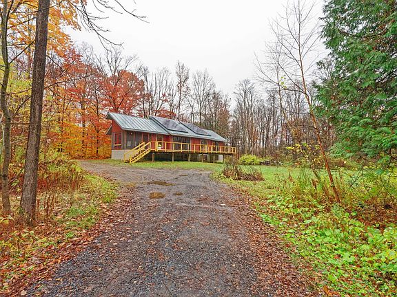 Meander down your winding driveway until you reach the clearing for your contemporary environmentally friendly home. Warm up by the roaring fire in your Tulikivi soapstone wood stove complete with pizza oven! Bask in the natural light of the southern facing windows in the open floor plan and benefit from the solar panels that keep heating bills low. Enjoy storage galore in each bedroom with built in closet systems and additional walk in closet in the master. Admire the european style bathroom starring a shower in the middle with sinks and low flow toilets on either side. Keep your feet toasty with radiant heated floors on the first floor and in the basement which has 2 more bedrooms and a full bath almost finished. Drink coffee and greet the wildlife on the expansive deck. Welcome home!