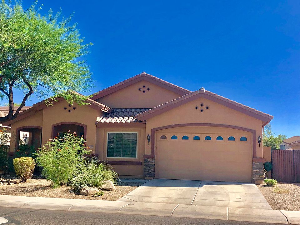 Welcome to the heart of Chandler! This 3 bed+Den, split floor plan includes a spacious living room, large kitchen w/ double ovens, granite island & countertops, great cabinetry w/ pull out shelves & tile flooring. Open concept family room leads to covered patio w/ Misters, Gas BBQ & Fire pit. Pebble Tec pool is solar heated w/ water feature & above ground spa. The spacious master suite has jacuzzi tub & shower, walk-in closet & door leading to pool/patio. Second bedroom En suite, Ceiling fans throughout home, gorgeous plantation shutters & wood plank floors, brand new water heater, large laundry w/ built in cabinetry, extra storage in garage, dual A/C units, low E dbl pane windows & newly owned Solar panels (2021). Surrounded by GREAT Chandler schools. Don't miss out!