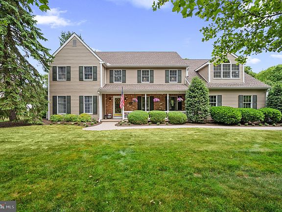 Lovely brick front farmhouse colonial nestled in the sought after neighborhood of Hunters Crossing, Buckingham Township. Welcome to 2833 E Fox Chase Circle, an updated and spacious four bedroom home situated on almost an acre with mature trees and landscaping. Paver walkways lead to the cozy front porch, a perfect spot for relaxing at the end of the day. Enter the foyer with hardwood flooring, wainscotting and crown moldings. A large formal dining is located to the right, on the left is a large living room, currently purposed as a home office with glass French doors. Head down the hall past the main staircase to the family room with brick fireplace, beamed ceiling and large Pella doors with great views of the back patio and private yard. The kitchen is complete with a large island with seating, tons of cabinetry, granite counters, a wine bar, desk area with bookcases and expansive counters for serving a large crowd on the holidays. Newer stainless appliances. Down the back hall you will find a large food pantry, utility closet, hall coat closet, and powder room. Access to the second floor bonus room by the back staircase. The second floor hallway leads to three spacious bedrooms, two with walk in closets, a renovated hall bath with marble flooring and walk in shower with glass doors. Two sink granite vanity with wood mirrored cabinetry for storage. A hall linen closet is located outside the bath. Head to the large main suite with a generous walk in closet, large renovated main bath with marble flooring, a deep soaking tub, large walk in shower with glass enclosure and double granite vanity. A large bonus room off the master can be used as another home office, an additional bedroom, or sitting room. The bonus room houses two large closets for clothing with double doors, and two additional closets for linens and other items. The laundry room with utility sink is located off the bonus room. The finished basement is the ideal place for movies, gaming, pool or pingpong, and is complete with a private yoga / exercise room tucked away in the back. There is plenty of unfinished storage space with a built in work bench and bilco doors to the side yard. Paver back patio is private and surrounded by mature plantings and trees, a great spot for outdoor grilling and entertaining. Yard has an invisible fence for pets. Central Bucks East HS. Conveniently located minutes from Peddlers Village, New Hope and Doylestown. Easy access to NJ via Rt. 202 and to 95 and the airport. Come see this beautiful home while it lasts. Owner is a licensed Real Estate Agent in PA.