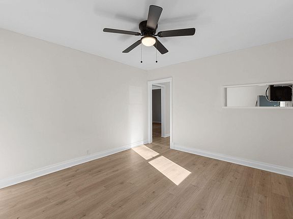 The home features 2 bedrooms, 1 bathroom, and a flex room great for a workspace, guest room, etc. The kitchen is updated with new cabinets, granite countertops, tile backsplash, and stainless appliances, plus fresh flooring and paint throughout.