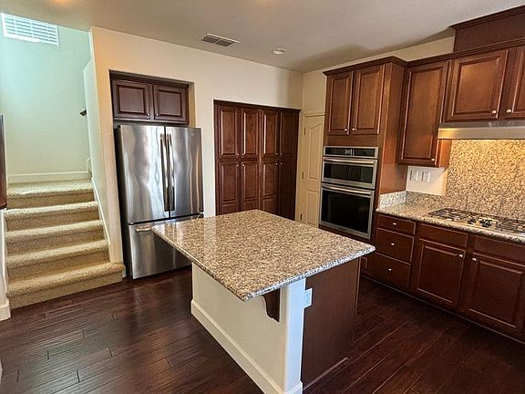 This 2 story Single Family home has been freshly painted and features 3 bedrooms with 3 full bathrooms in just over 1,500 square feet. Through the front door and to your right is the living/dining room combo, with high ceilings and hardwood floors. The large kitchen features granite countertops, a 5 burner stainless steel gas stove, wall oven/microwave combo, dishwasher and refrigerator. One carpeted bedroom is located on the main floor and shares a full hallway bathroom with walk in shower. The other 2 carpeted bedrooms are located upstairs. Up the stairs and to your right is the junior primary bedroom and it features its own on-suite bathroom with a single vanity and tub/shower combo. To the left is the large primary bedroom with primary bathroom featuring a dual vanity, walk in closet and tub/shower combo. The laundry room is located on the 2nd floor and features new washer and dryer. Forced heat and A/C. There is a small patio area off the living/dining room area. Property has solar panels which help keep the PG&E bills low (tenant responsible for yearly true-up). Attached 2-car garage. 1 small pet negotiable. Sorry, no co-signers. 1 Year lease (MT) Placement