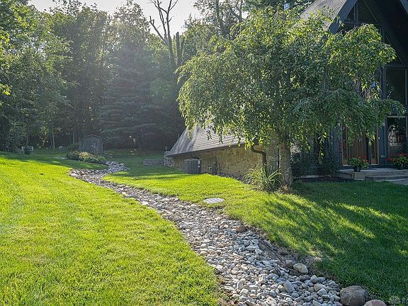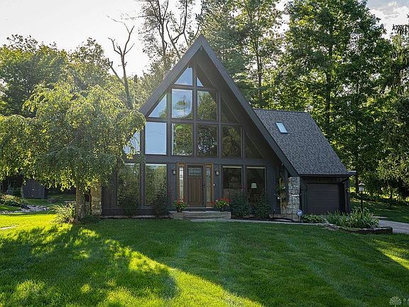 THIS HOME IS SPOTLESS!! You won't want to miss this one of a kind gorgeous turn key A frame that has been well maintained situated in Forest Hills. The front of the home boasts a wall of high efficiency windows with electric window coverings that convey! Outside the roof, dry creek bed, retaining wall, & owners suite balcony have all been replaced within the last 3 years. Inside, you will enjoy the two-sided stone floor-to-ceiling fireplace from the open great room, kitchen, & dining area, updated wood flooring and carpet throughout, granite countertops, 2 bedrooms on the main level with double doors leading to the large back patio, 2 additional spacious bedrooms can be found on the second floor with with an updated bathroom. The owners suite has it's own private balcony! The upstairs loft area is spacious and overlooks the great room below. Many updates including: All front windows replaced in 2018, HVAC system 2018, sump pump 2018, & water heater 2017, roof 2021, balcony 2022, dry creek 2020, and many more. Quick access to 41, 68, 70, WPAFB. All appliances including washer and dryer stay!!!! Most furniture & furnishings are negotiable!!!!