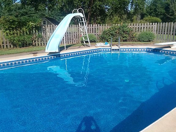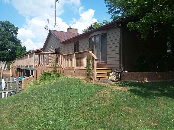 A very unique property with over 4000 sq ft of living space. Granite countertops with Travertine backsplash in kitchen, new flooring in kitchen and dining room. Livingroom & Formal dining room are sponge painted so easily changed. There are 3 accesses to finished basement; 2 heating systems gas forced air and wood burning forced air. When you walk out of the basement, there is a large lounge area with a 21x49 in-ground pool new liner 1 year ago for your entertaining. All on 10 acres, good hunting for the outdoorsman with a 50x60 pole barn with 14' overhead door with heat, concrete floor and security system. $395,000.