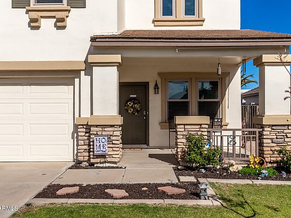 Welcome home! This desirable two-story 3 bed 2.5 bath residence in Santa Rita Ranch is waiting for you! Providing a grassy landscape, RV gate, stone accents, and a cozy front porch where you can enjoy your morning coffee. Upon entering, you'll notice a cozy living room, tile & carpet flooring, designer paint, and a family room with backyard views. The eat-in kitchen features honey oak cabinets, plenty of counter space, R/O system and built-in appliances. Upstairs is the large primary bedroom, offering a spotless updated bathroom with Jacuzzi shower, dual sinks and a perfectly-sized walk-in closet. Newer whole house water softener, HVAC, and Milgard windows for max energy efficiency. Spend relaxing afternoons in the private low maintenance backyard with a covered patio and grassy area.