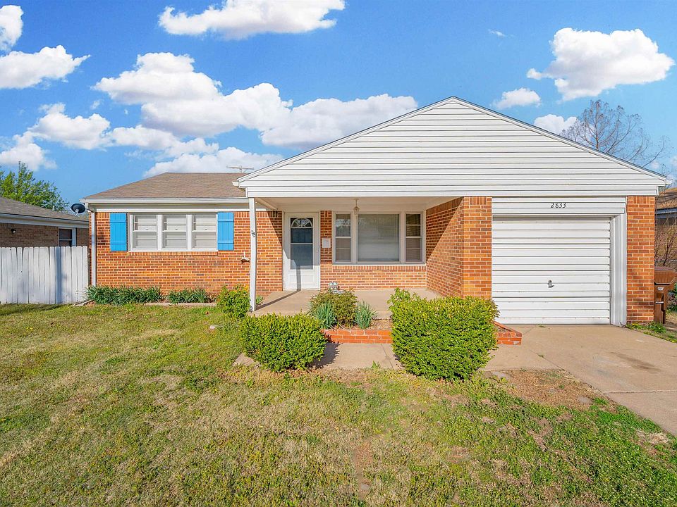 Great starter home or investment property, welcome to 2833 S. Larkin! This charming 2 bedroom, 1 bathroom ranch style home boasts a lovely living room with hard wood flooring, large window to bring in natural light, a ceiling fan and storage closet. It is extremely easy to maintain! The dining area is just off the light and bright kitchen which features low maintenance vinyl flooring, windows, all appliance remain, 2 ceiling fans, and washer/dryer. The warm and inviting bedrooms are complete with carpeting, windows that flood in the natural light, ceiling fans, and plenty of closet space. The backyard is a manageable space with a pergola, storage shed and chain link dog run and fencing. Don't miss out on this opportunity!