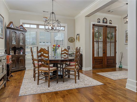 Charm and lifestyle come together and make this property a must see. When you come out to tour this home, you'll be greeted with an elaborate entryway, featuring a flagstone patio paired with an exquisite set of wooden french doors. Pass through the foyer into an open, yet defined, kitchen, dining, and family room space. The home features a true split floor plan, with the owner's suite on one side of the home, and the guest rooms on the opposite. Escape out back to the large, screened-in, back porch, surrounded by a mature landscape that creates a year round oasis in this back yard.