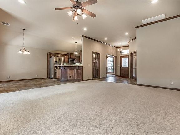 Wooded and gorgeous Coffee Creek Subdivision with walking trails and close proximity to Mitch Park, Show Biz theatre and many restaurants. Large Open living with inviting neutral colors. Kitchen has stainless steel appliances including refrigerator, gas range and graphite front loading washer and gas dryer. Master Suite includes walk-in closet and recent updated bathroom with shower and tub. Three car garage features in ground storm shelter and 220 electrical. Come take a look...it won't last long.