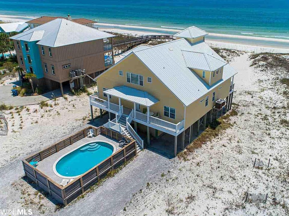 The "YELLOW ROSE" BEACH HOUSE is for Sale!! Relax in Paradise in this amazing Beach Front Home featuring 7 bedrooms and 7 baths and your own Private Pool. Perfect for large families, reunions, Weddings, Meetings, Corporate Functions, etc. which makes this home the RENTAL MACHINE! Rentals are over $160K!! If you love Privacy on the Beach, This is It!! This Beautiful Home features TWO Separate Living Areas and TWO Separate Kitchens!! Each kitchen boast beautiful cabinetry, stainless appliances, granite countertops, Double Dishwashers and Large islands. Many other features include multiple balconies with Direct Gulf Front Views, Travertine flooring, Tile Showers, Crown Molding and a Spiral Staircase for Additional sleeping or fun space for the kids. An Enormous amount of storage and parking for 6/8 vehicles. This home has it all with its Gorgeous views of the Beach and the Lagoon. This home is being sold furnished!!