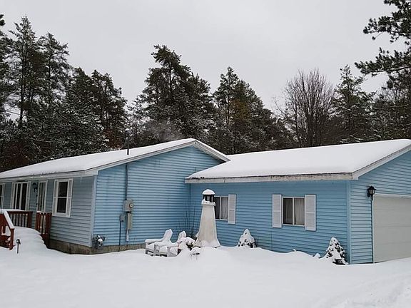 This BOCA Modular open-concept home shows a high degree of workmanship. Quality hardwood floors in the kitchen and dining area provide a high degree of warmth to this one. The large living and family rooms will allow your family and friends to spread out. Also, both rooms have large bay windows for views of your 3.8 acres with hardwoods and wildlife. A large circle driveway gives easy in and out. This home is only 1 mile from 1-75, Kirtland College and the Arauco plant. You are tucked away from the road far enough to provide excellent privacy, peace and quiet. There is state land with many trails right across the road from your property. Natural gas is a plus too! You will stay warm and save $$ with the R-41 ceiling and R-19 sidewall insulation. Also includes a small storage building. Call Today!